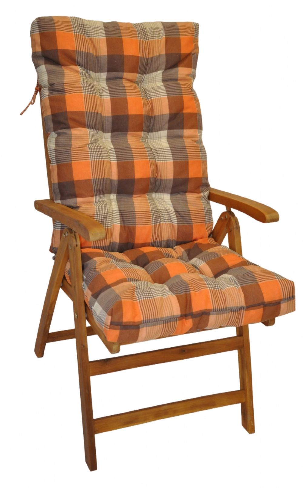 Polster für Gartenstuhl , Hochlehner Auflage Sylva , Hochlehner Auflage , Gr. 120 x 50 cm , Uniko Orange Karo Motiv .