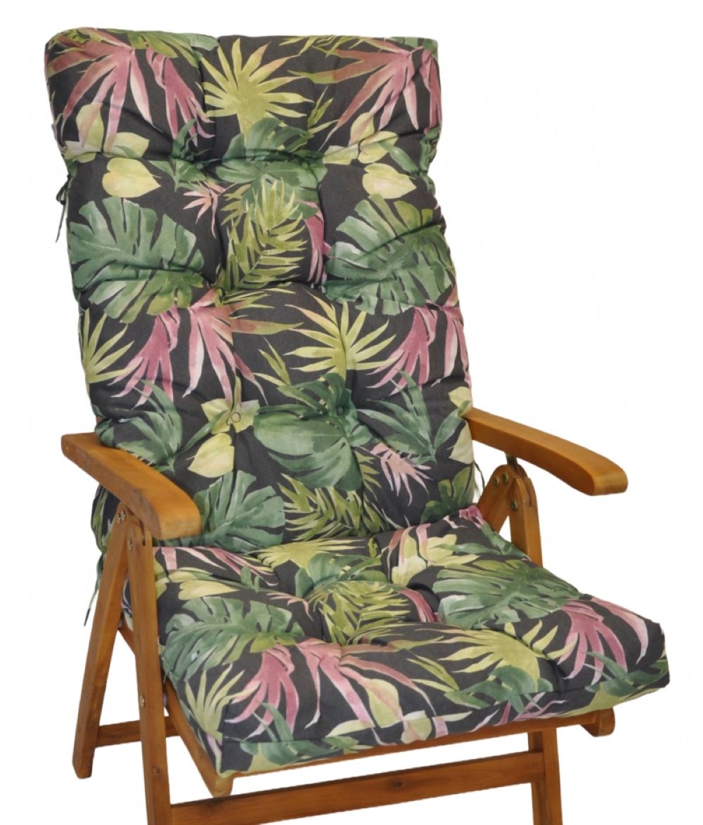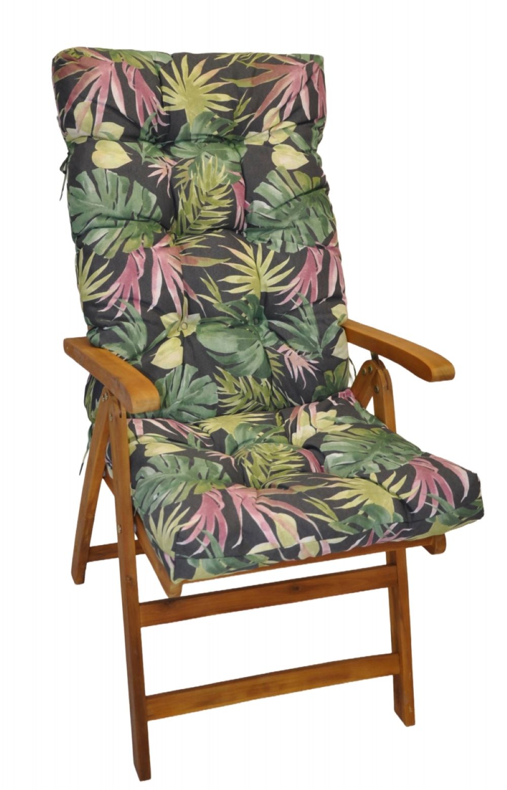 Polster für Gartenstuhl , Hochlehner Auflage Sylva , Hochlehner Auflage , Gr. 120 x 50 cm , Uniko Monstera Motiv .