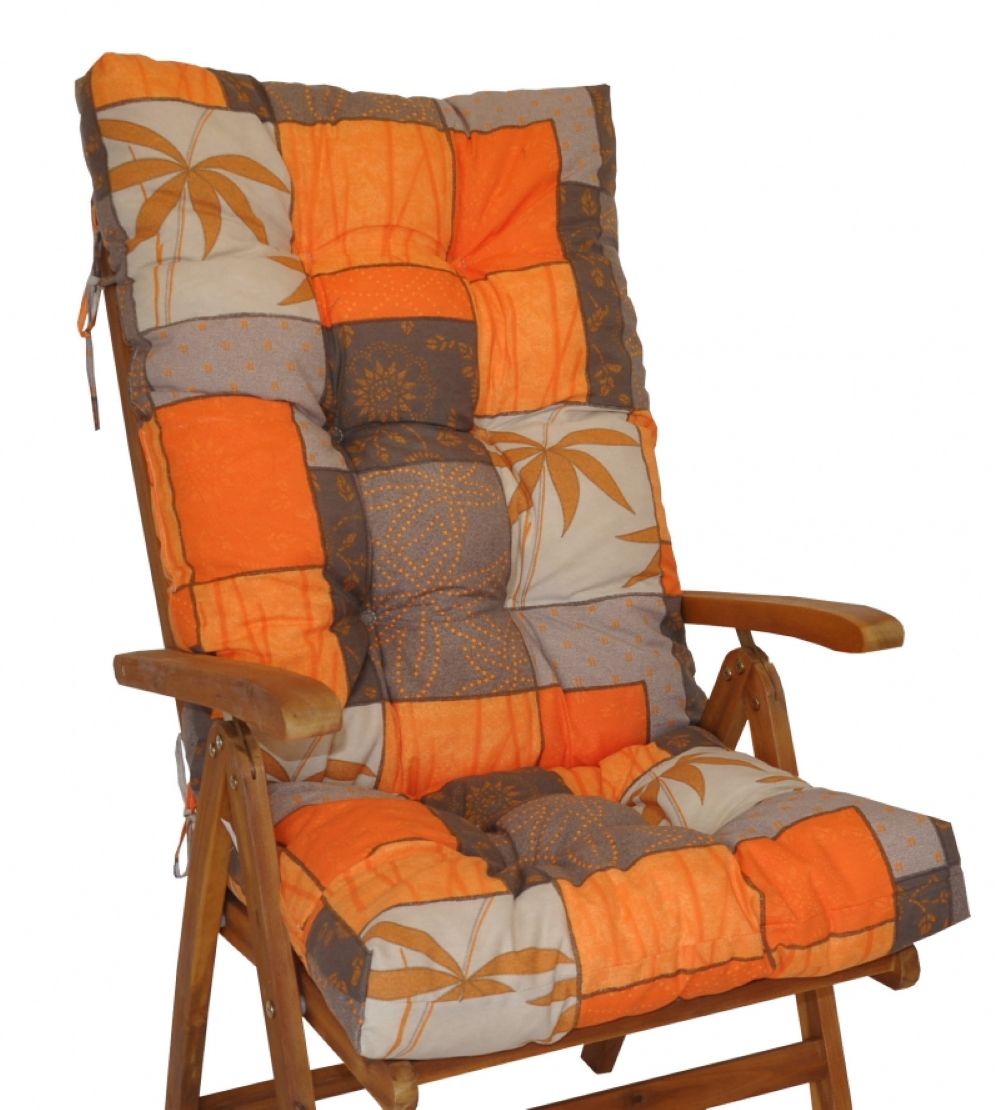 Polster für Gartenstuhl , Hochlehner Auflage Sylva , Hochlehner Auflage , Gr. 120 x 50 cm , Uniko Orange Motiv .