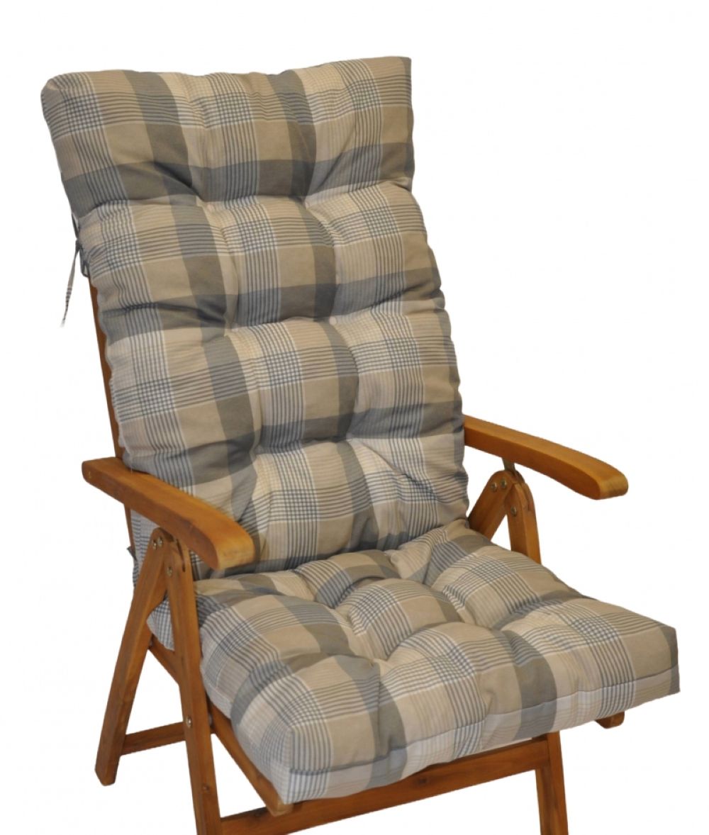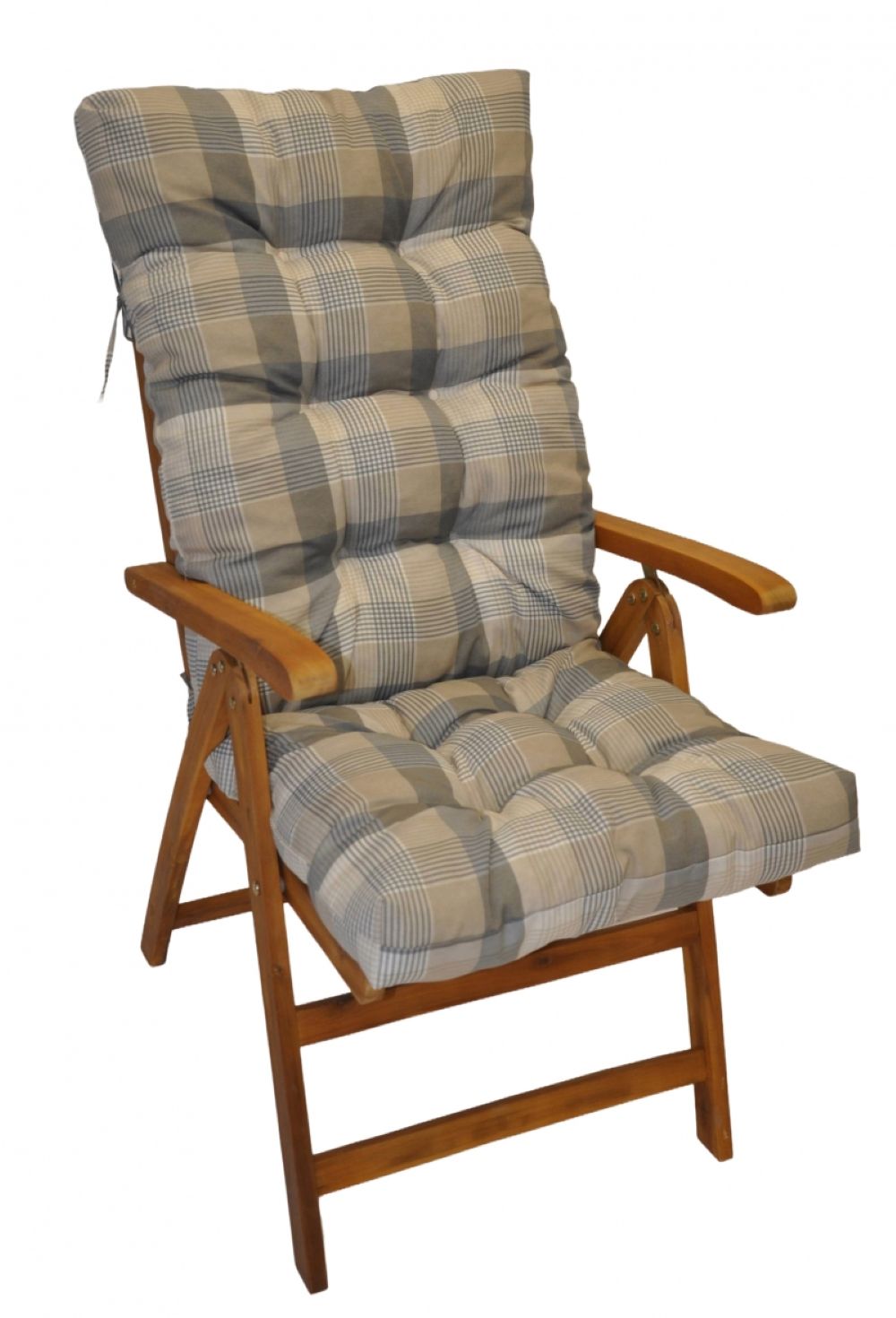 Polster für Gartenstuhl , Hochlehner Auflage Sylva , Hochlehner Auflage , Gr. 120 x 50 cm , Uniko Karo Grau Motiv .